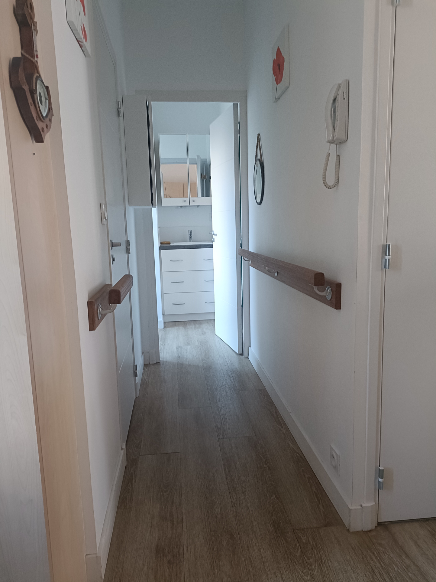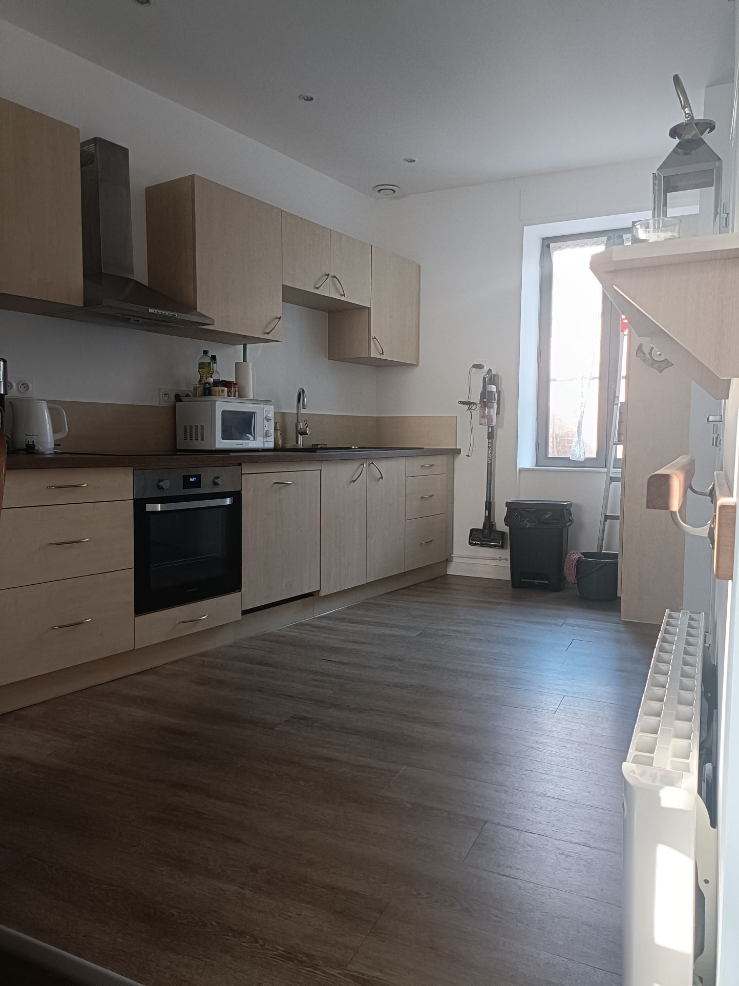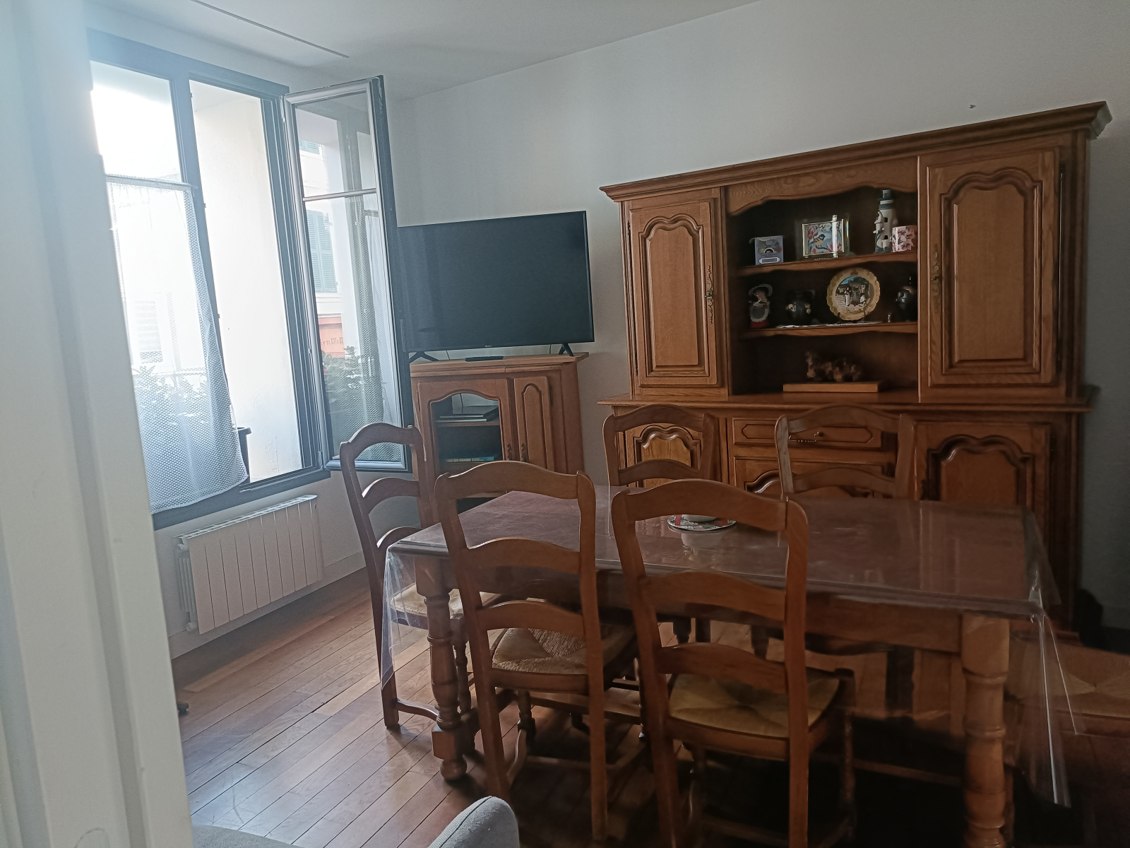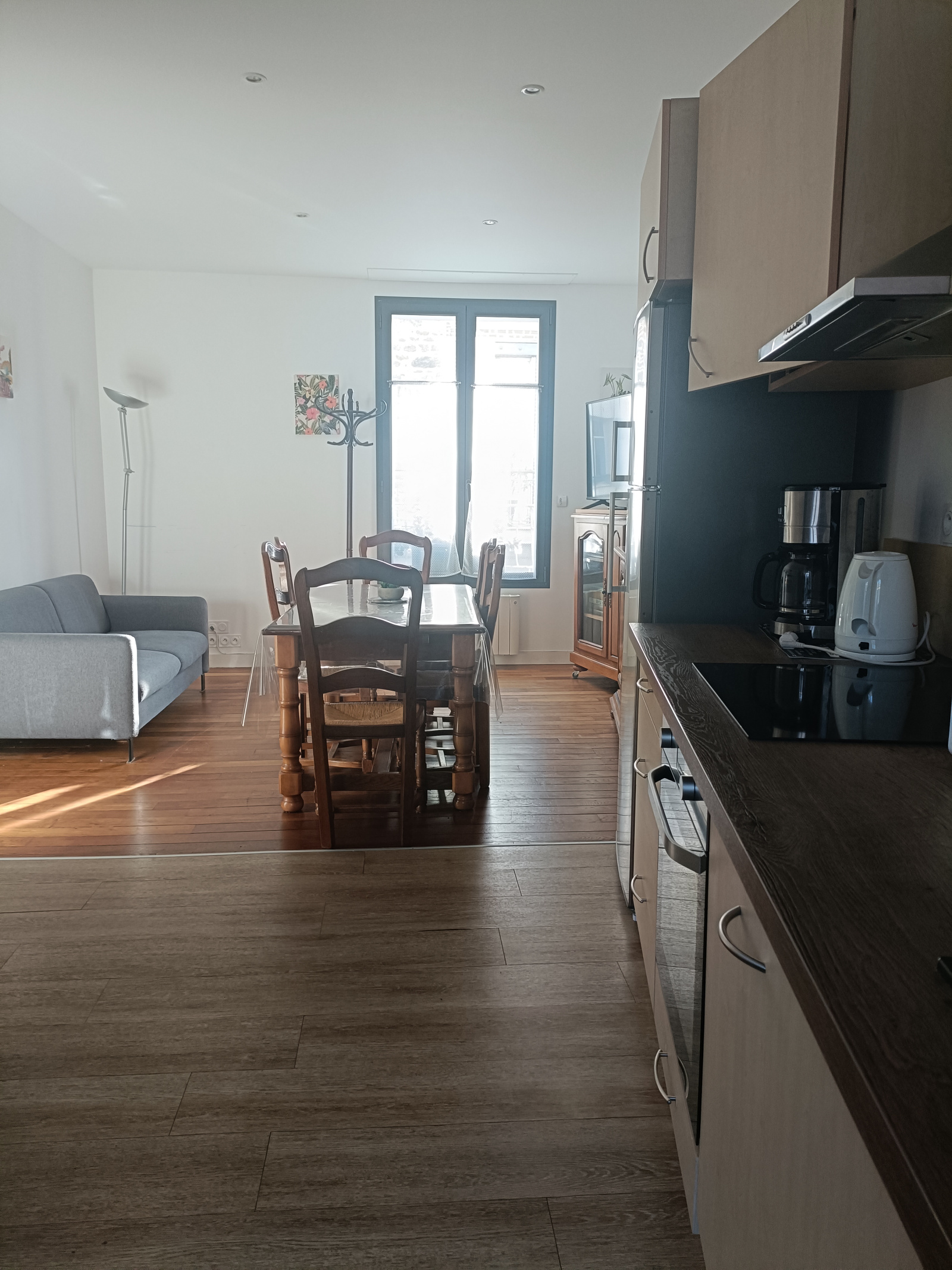 Installé au 1er étage d’un petit immeuble de seulement deux niveaux, l’appartement profite d’une belle lumière du sud qui traverse la pièce de vie du matin au soir.