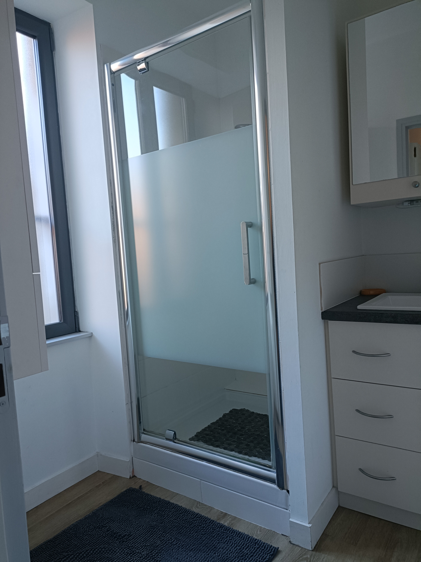 La chambre, calme et accueillante, dispose d’une armoire et d’un lit. Une salle d’eau fonctionnelle et des WC séparés, dans la continuité du confort recherché.